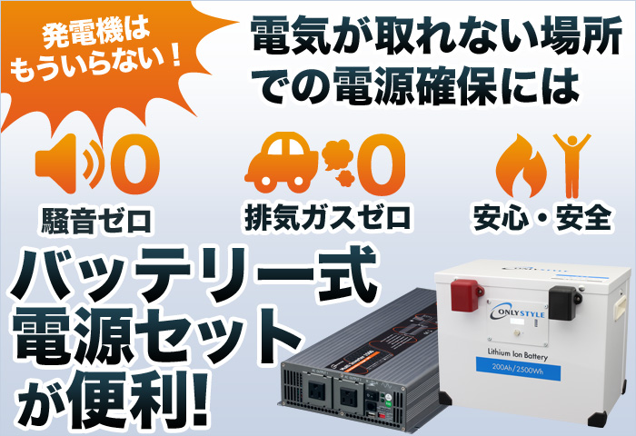 その点、こちらはエンジン式発電機のような排気がないですし、エンジンを回さないから不快な騒音も出ません。